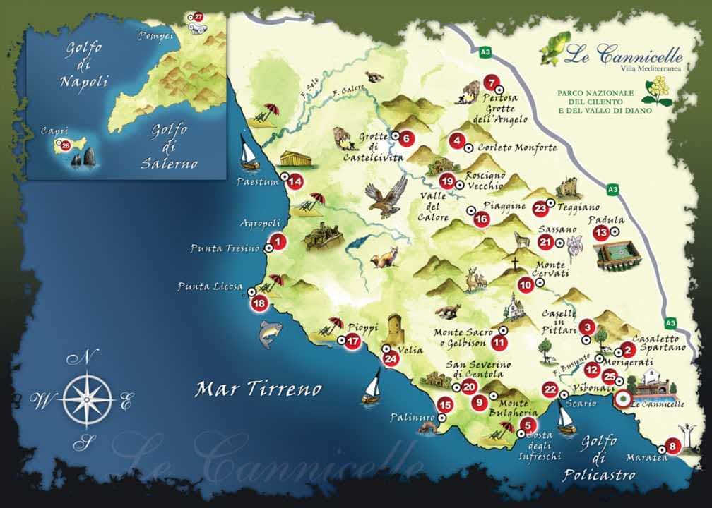 The beach is very close and the “marina” of Villammare is less than 1 mile therefore is possible walk but car is recommended because the last part of the road to the villa is quite steep – it is the villa’s elevated position that provides such beautiful views!. A rental car will also allow you to take day trips all over Cilento National Park and the Amalfi Coast at your own pace, without having to rely on public transport or taxi service, which can become very expensive if used everyday.